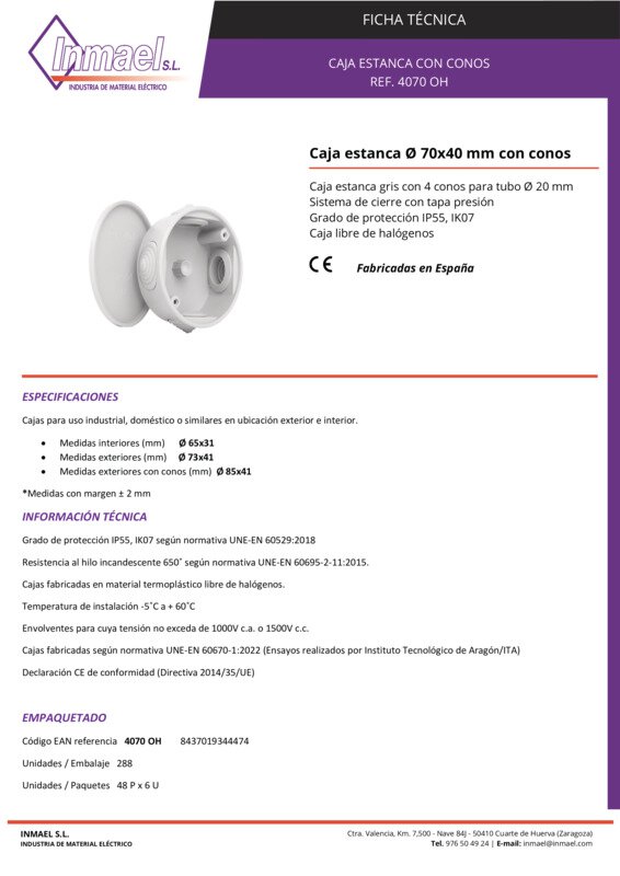 Ud. caja redonda estanca c/conos tapa presion diam 70x40