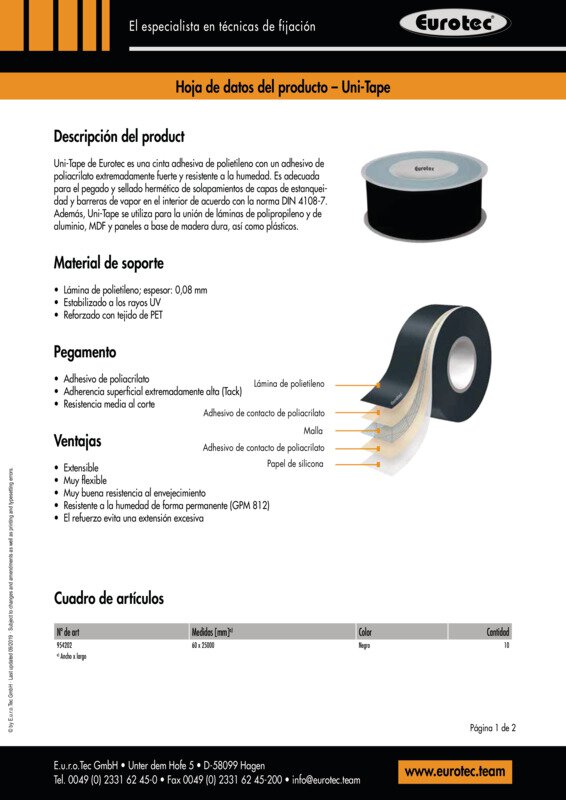 Rollo Cinta para laminas transpirables selladora universal uni-tape 60mmx25m